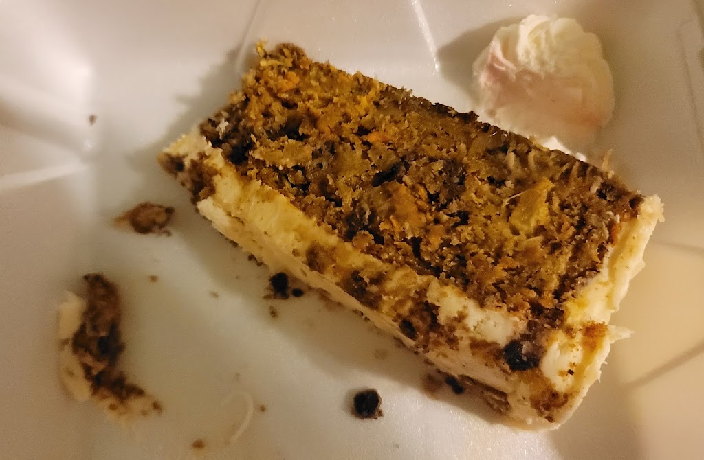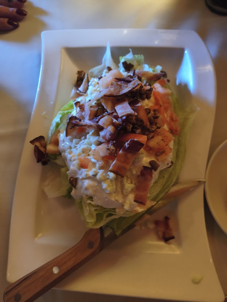 My wife’s wedge salad was similarly uninspiring. It consisted of a large slice of iceberg lettuce, simply drizzled with globs of lumpy ranch dressing, which overwhelmed the freshness of the lettuce rather than complementing it.