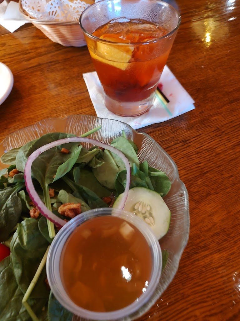Started off at the bar with excellent brandy old fashions an a shrimp cocktail. Very good. We both ordered steaks, I had the river and my dining companion a 6 oz. filet. Both were cooked to a perfect medium rare. We ordered the spinach salad, the pear dressing was tasty. Looking forward to returning again.