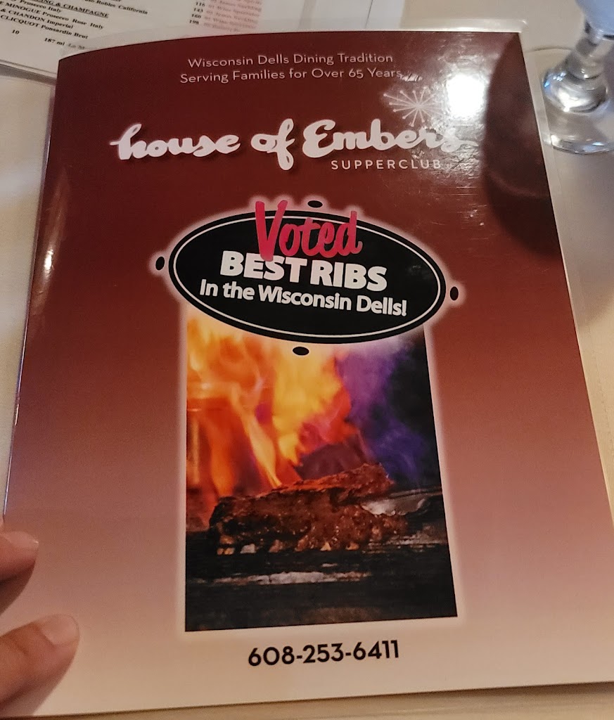 My mom and I go to House of Embers everytime we visit Wisconsin Dells I don't think the brothers run it anymore. We came for the prime rib had 6:30 reservations they open at 4:30 they only have prime rib on Saturday nights they ran out how can you run out when thats the special we left and went across the street to the Del Bar it was a delicious meal. Enough said!