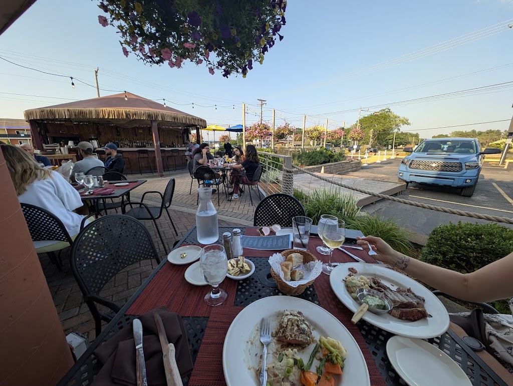 I'm giving it 4 stars because the food and drinks were delicious, but that was about it. Had a 7pm reservation but didn't get seated until 7:45. The restaurant was packed on a Saturday night (which is understandable) so they ran out of prime rib by 8pm. I'd recommend eating earlier around 5:30 or 6pm. But once we got seated and served the food and drinks were awesome. The clientele on the other hand was something to be desired. We saw multiple people in swim trunks, cut off t-shirts, and hats. I get that it is a touristy area, but come on people!! Maybe change out of your water park clothes before coming to eat at a more high end restaurant, and maybe take off your hat while at the table. That drove me nuts, but I guess I'm old school. I'd come back and eat again but probably not on the weekend during the summer.