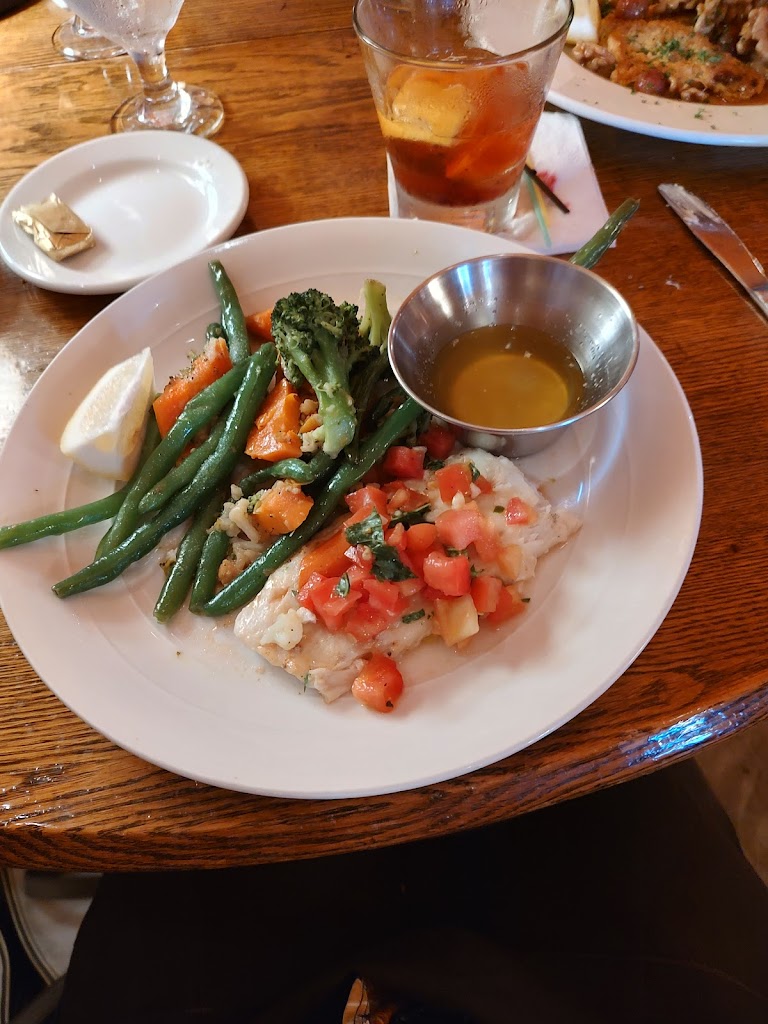 There are far better choices in the area. Had baked cod which was worse than average, would not return, odd decor, lots of staff relative to number of patrons at 8 pm on a Friday, staff moving around a lot and clanking dishes and talking loudly, expensive special Cocktail did not taste very special.