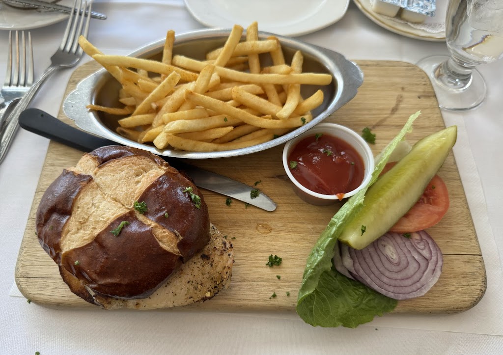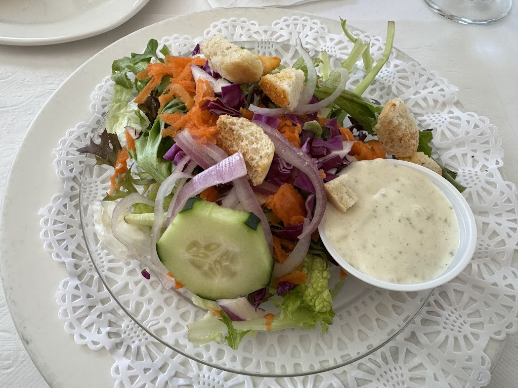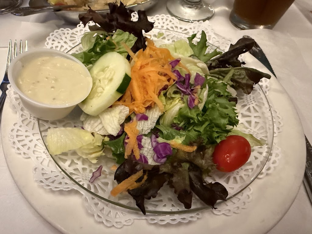 Recommend the house mustard dressing on the salads. French onion soup is wonderful. Their schnitzels are terrific. I always end up with the German platter, because everything is so consistently good. The "lazy susan"-starters (chopped liver, bean salad, bread and rolls) is so much appreciated.