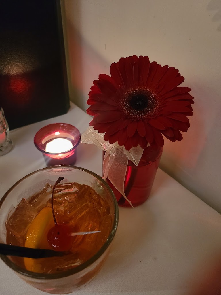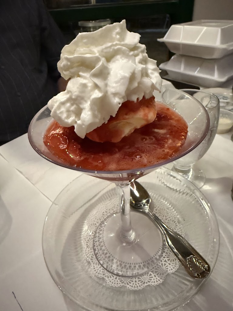Exceptional tuxedo cake for dessert and a great brandy Old Fashioned sweet made it that much better.