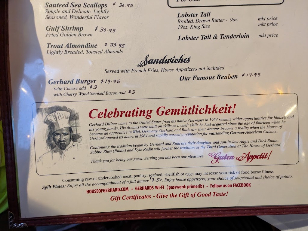 Updated Review - 10/23/24: Every time I eat at House of Gerhard, I am amazed at how incredibly delicious everything is! Once again, I had the Wednesday Special… Split Pea Soup… and the Bavarian Pot Roast with red cabbage and spaetzle. The service was friendly, fast, and super helpful. Everything was perfect! I would highly recommend eating here! You will NOT be disappointed.