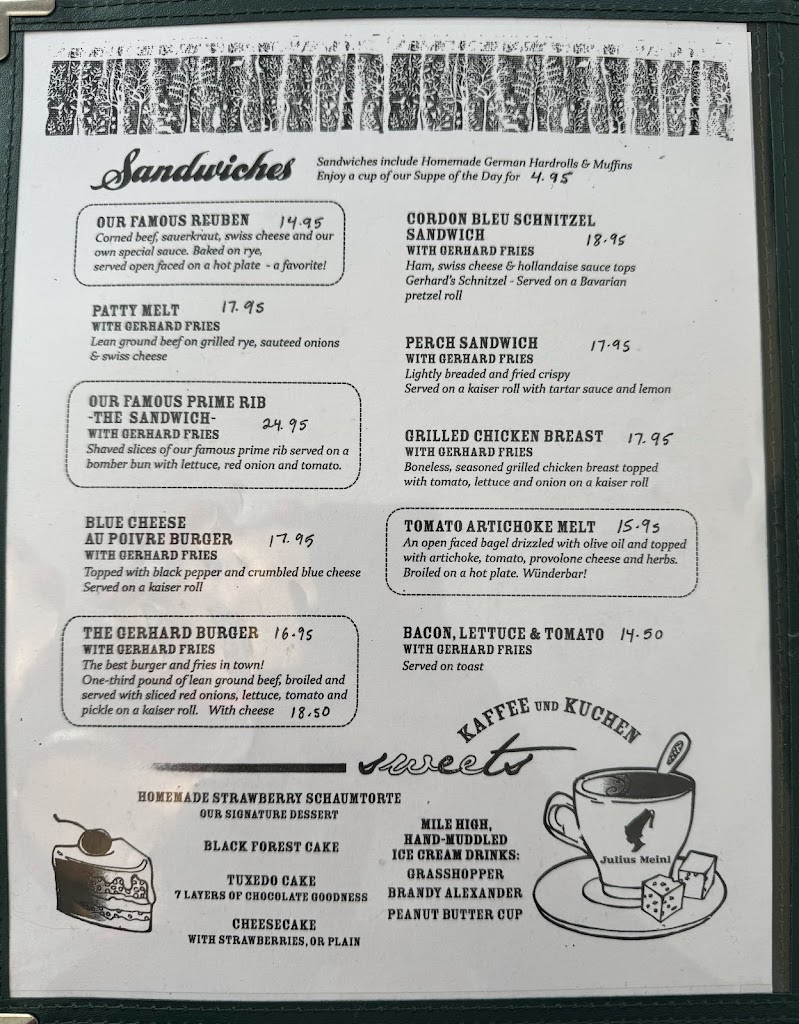 We’ve been ordering the traditional corned beef and cabbage meal for years from here to celebrate St. Patrick’s Day. This year my wife called on Friday, March 15th, 2024, to place the order for Saturday night. She was told that there was no need to place the order now, and to just call back the next day anytime after noon. So on Saturday, my wife calls and the woman answering the phone rudely says they’re not taking take-out orders. My wife lets her know that she called and spoke to someone the day before, and if she could please go ask someone. The woman comes back on the phone (even more agitated than before) and says “fine, we can take your order but we can’t do it for 5:00 pm, you’ll have to pick it up at 4:00 pm because we’re going to be too busy with the diner”. My wife calls me and I let her know that I’m not able to get out of work before 5. I told her to call Mason’s instead. Mason’s did a great job. Friendly staff, prompt service, and the cost was so much less! The food was excellent - actually better than Gerhard’s. So THANK YOU Mason’s! As far as Gerhard’s - we’ll never be back. Totally overrated. I’ve never written a bad review but you can see why I did, and I’ll be sure to share our experience with others too.