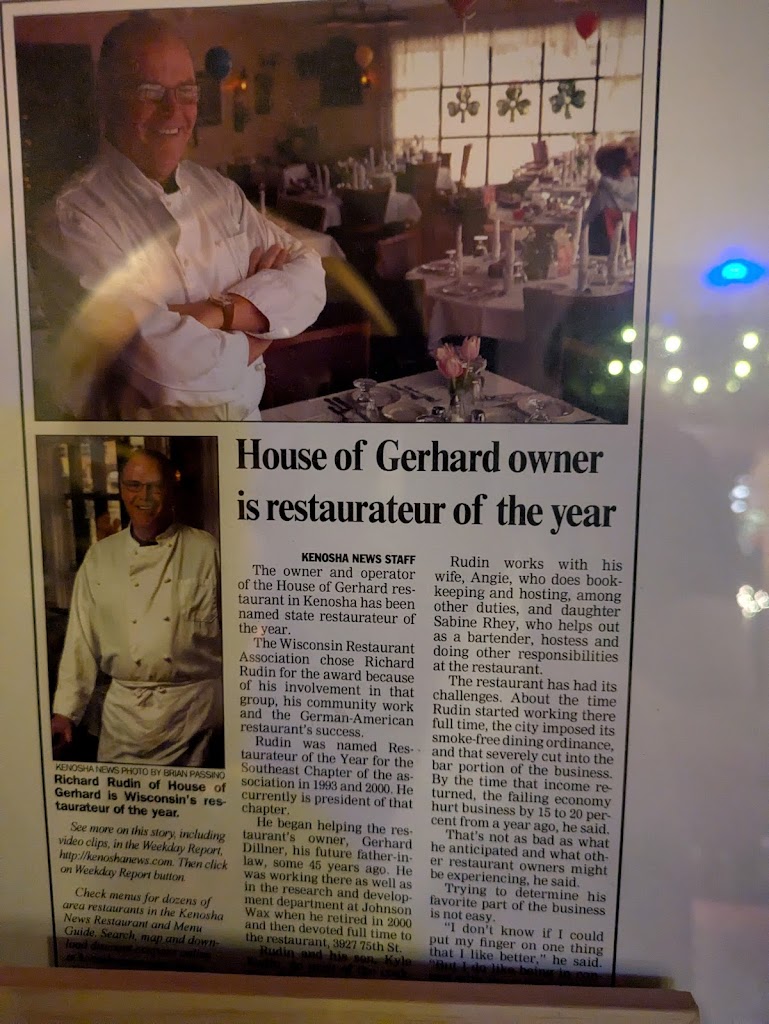 Updated Review - 8/23/25: WOW!!! What a disappointment! I have been to House of Gerhard more than 25 times over the past 20 years or so. My experience this time was terrible! The tables were so smashed together and there were so many people talking… you could not talk to the person next to you… let alone hear the waitress. I used the Noise app on my Apple Watch… it registered 84 dB. The next day I went to the Milwaukee 250 Indy car race and the Noise app registered 86 dB. (I attached a pic). The food was expensive for what you got. I ordered the Oskar Schnitzel. I could barely find any crab. The asparagus spear was like eating string. It was inedible. I couldn’t swallow it.