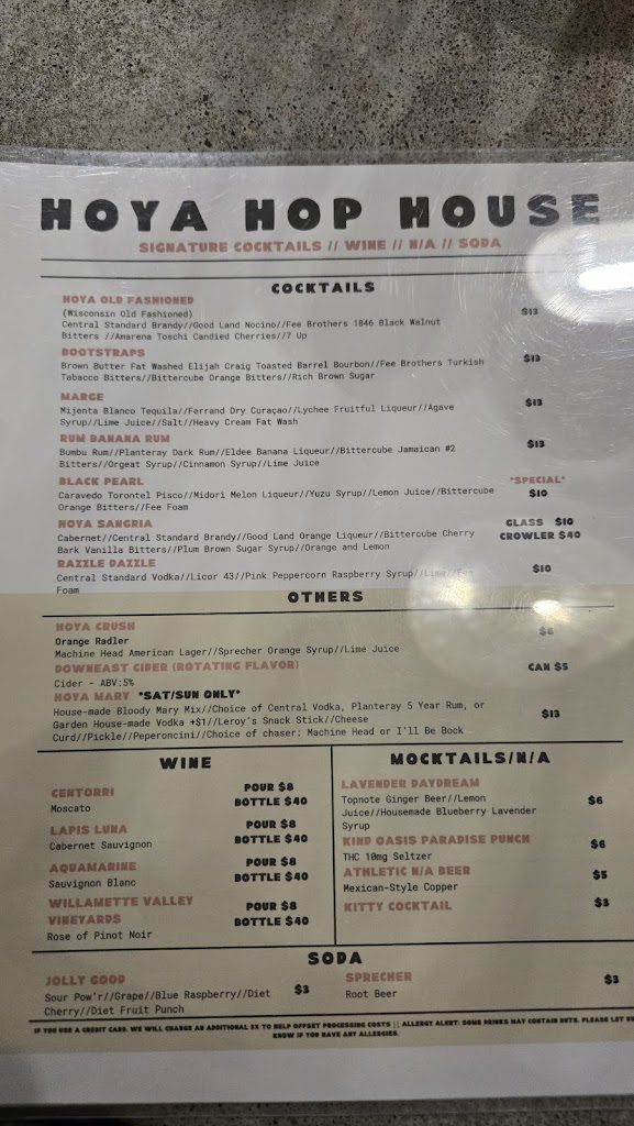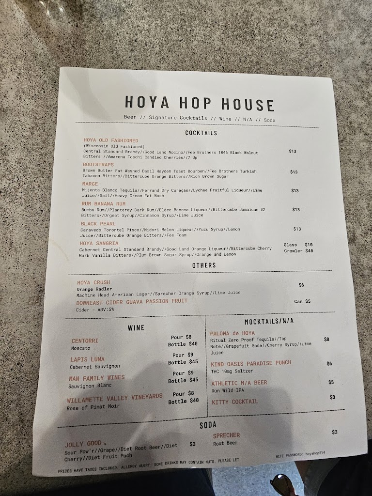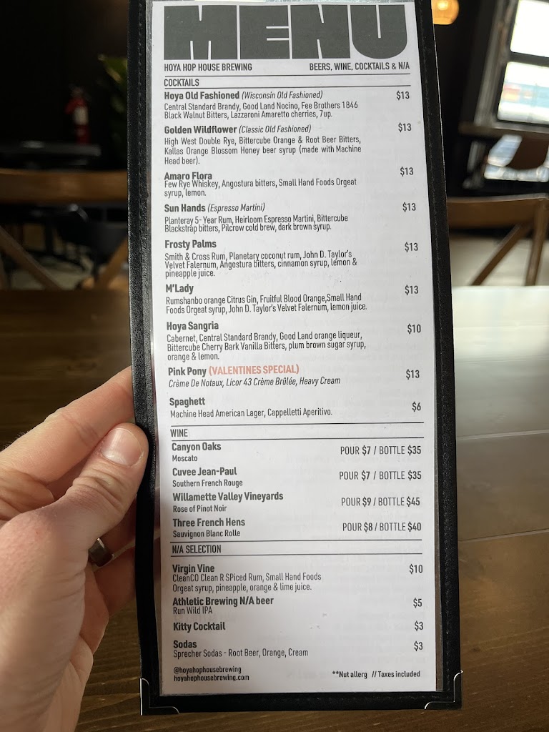 Hoya Hop House has a cool, laid-back vibe with a solid tap list and good service—definitely a great neighborhood spot to hang out. The only downside? My phone ran out of battery and there were zero charging options available.