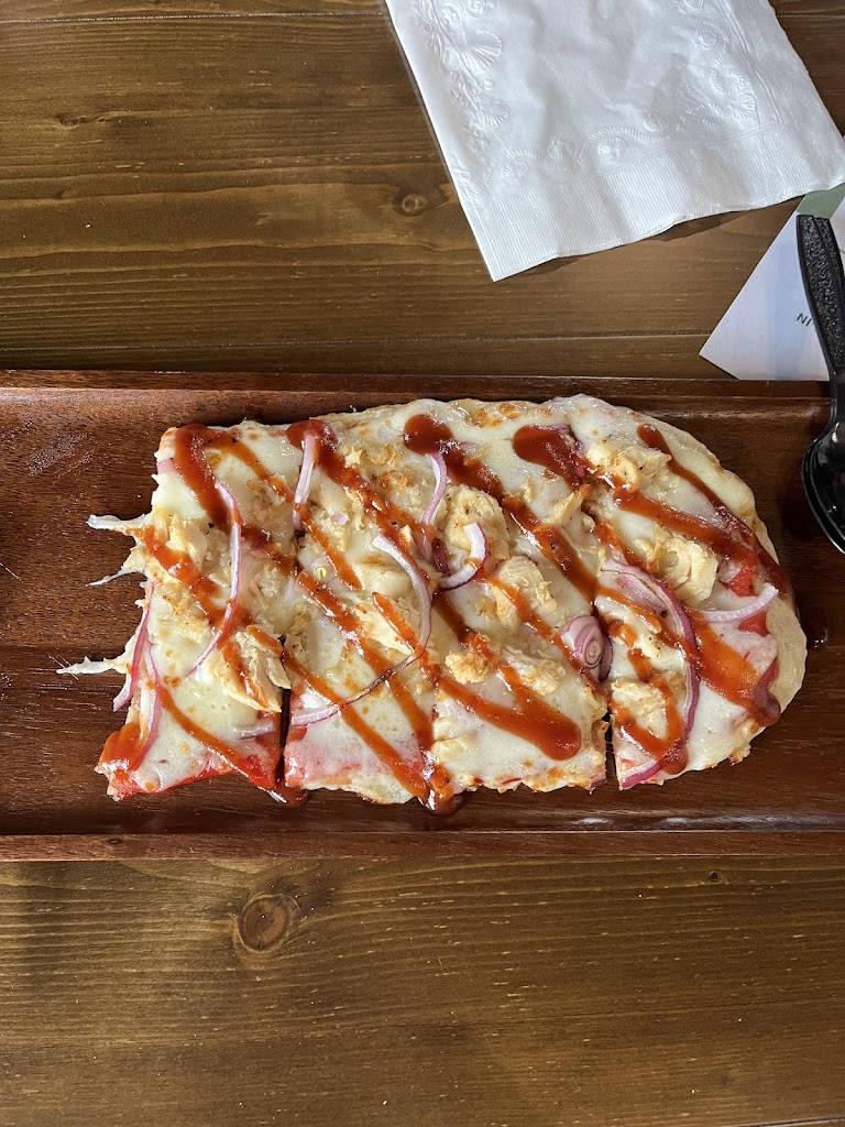 The food was good and priced appropriately. It is self service. No table service. I had the Nachos with beef. They were tasty. The pizza flatbreads that my friends purchased looked excellent! Definitely plenty of food. Nice atmosphere.