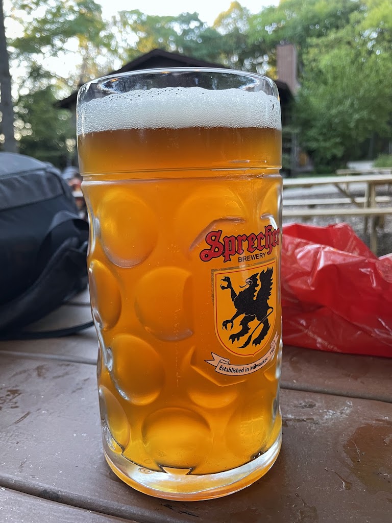 What a wonderful place to come upon while on a walk along the river.. βΊ was visiting milwaukee for the weekend and i was super happy to stumble upon this lovely beer garden in the middle of the woods. Plenty of places to sit. Huge beer glasses. What more could you want. Its a 5 dollar deposit for the big glass.. Return the chip n get your 5bucks back or trade the chip and a 15 dollar difference to keep it. We brought one home. π»
