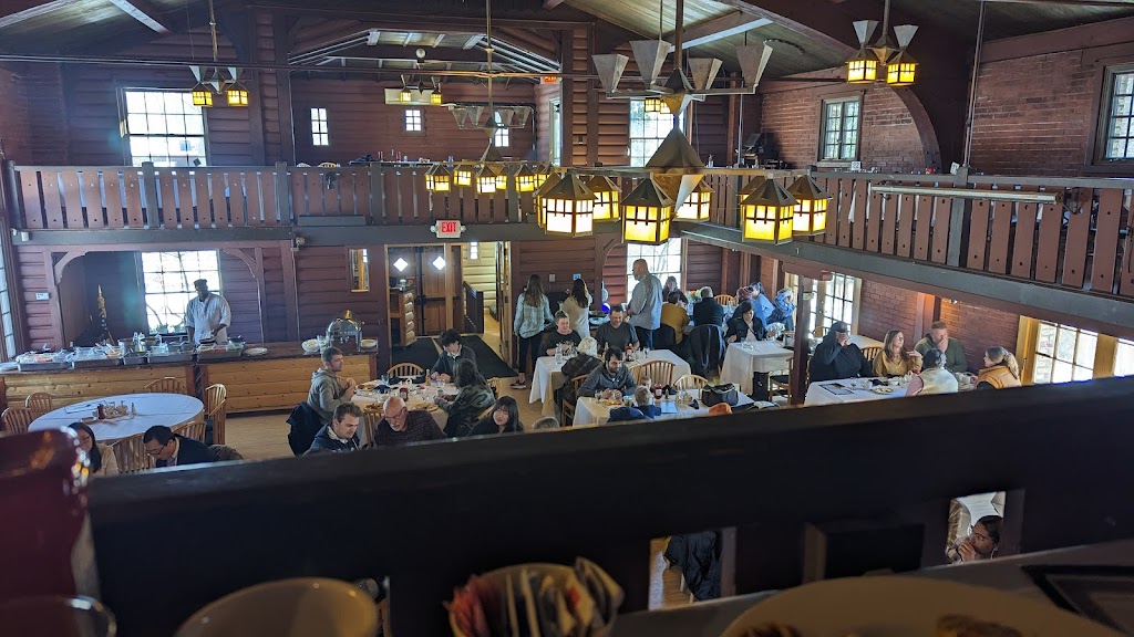 I have been brunching at this place for 30 years. The walk to the lodge is enchanting and the ambiance inside is hard to match. The brunch today was lovely. The carving station turkey was out of this world, the ham was a little on the dry side and unfortunately none of the chafing dishes had signs indicating what was inside so everyone had to open each one. The handles were sticky and did not have a cloth napkin tied to the handle like I have seen done at other buffets.