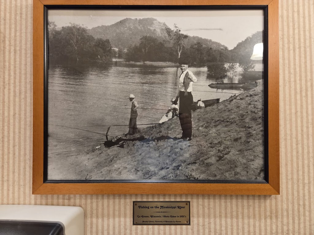 The server and everyone there were friendly and really made us feel welcome. Got a nice table on the deck with a good view. The food was mediocre. Salad greens on the edge, watery dressing, tasteless walleye, burned sweet potato fries with no dipping sauce. We only had time for one meal in Lacrosse and wish it hadn't been this one. The plus was our young server from Romania, did a great job.