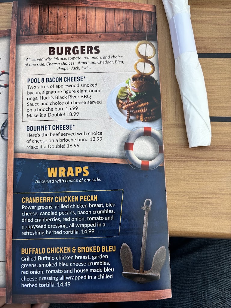 Unfortunately horrible experience. We had visited this restaurant back in the day when we kept our boat here, always enjoyable. Recently brought our boat over for dinner and it was an experience I will never do again. Service was slow and behind...tables left cause they never received menus. One couple came in and met with staff to find a table outside and 5 tables were not bussed...they were the only tables available. Drinks were 20 minutes...2 sodas and 3 old fashions...well they were kind of old fashions...they had the right ingredients but the levels were wrong. But this is what sent me over the edge, the menu item i ordered whs the CHICKEN BACON & SWISS ON A BRIOCHE BUN. The pictures on the menu look great, kind of like McDonalds menus...until you receive your item. It did have chicken, it did have bacon and it did have swiss...but the bun was something that was old and crusty. In fact my daughter thought it was toasted because it was "kind of crusty"...well it was a cheap piece of bread in the "day old" shelf.