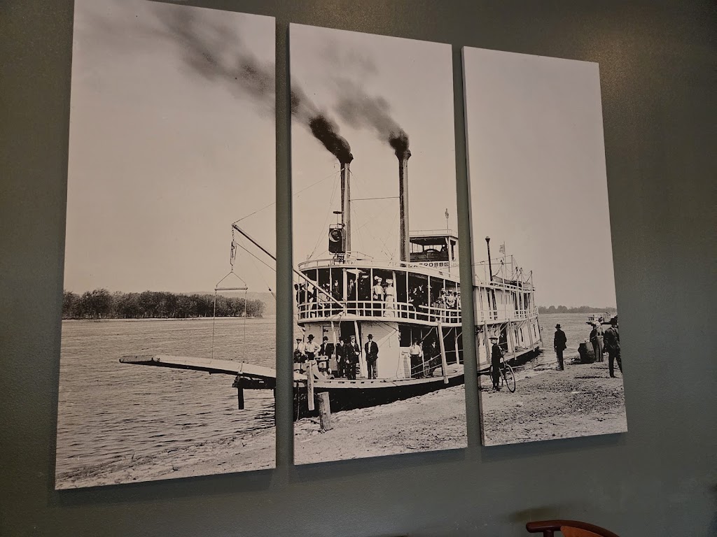 Had dinner outside by the marina so view was great with the water and bluff on the other side, we even had a riverboat in the background.