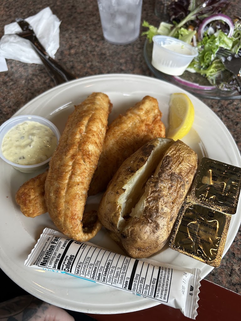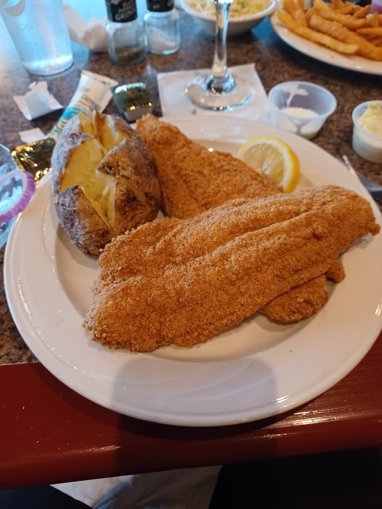 Great food! We got the cod and catfish, we have gone to many fish fryβs this is seriously one of the best! They were super welcoming to our pup, got him fresh water a few times! Our waitress was very nice! Would come here again!
