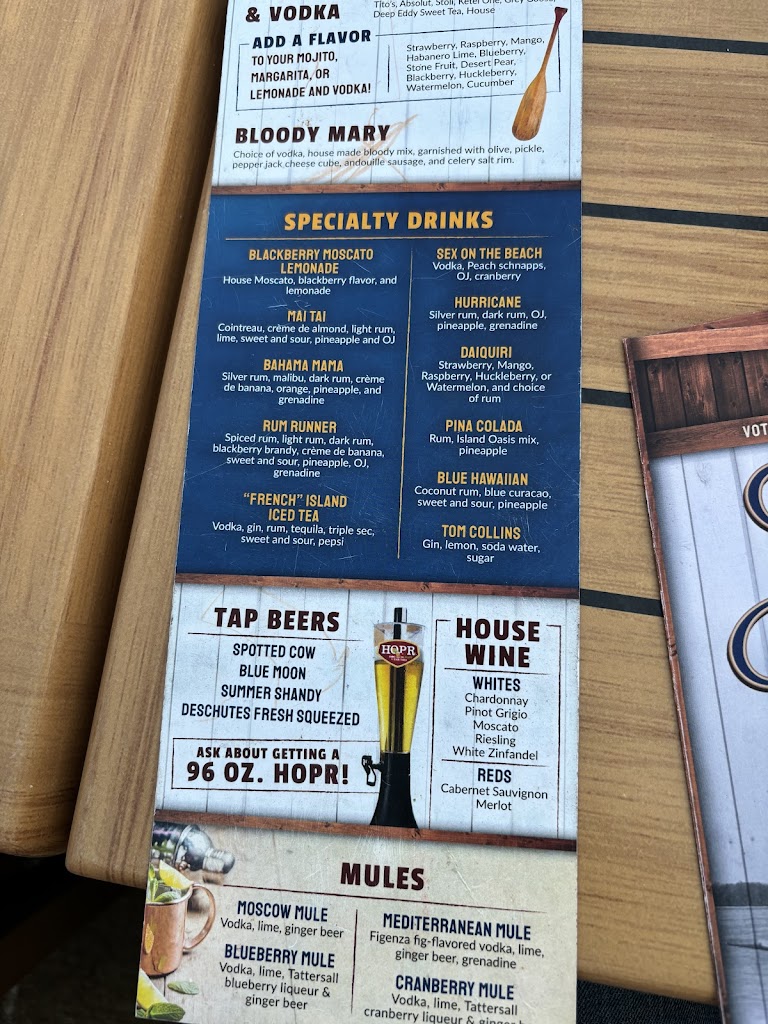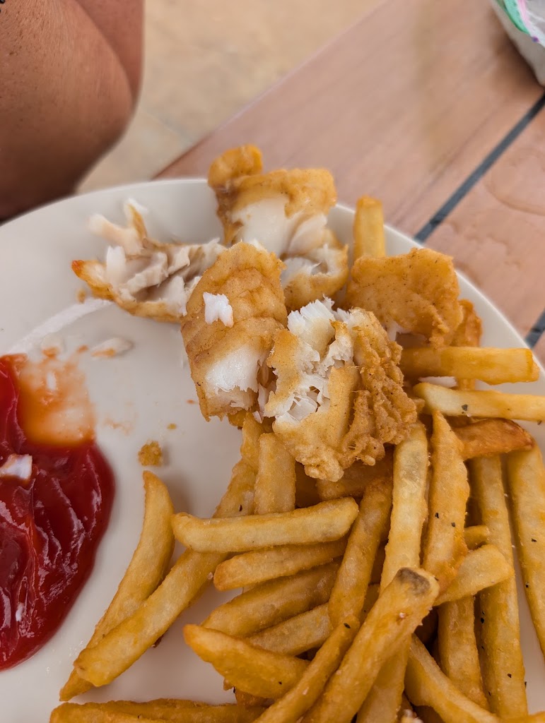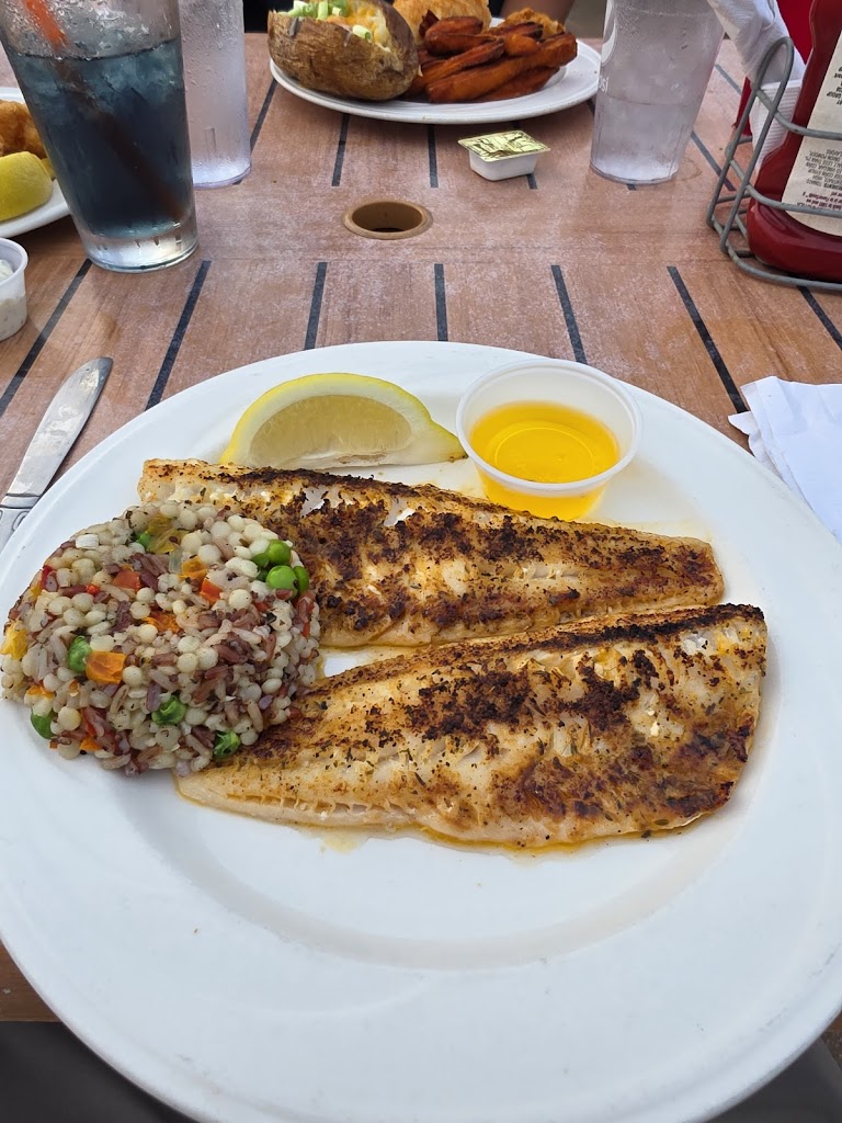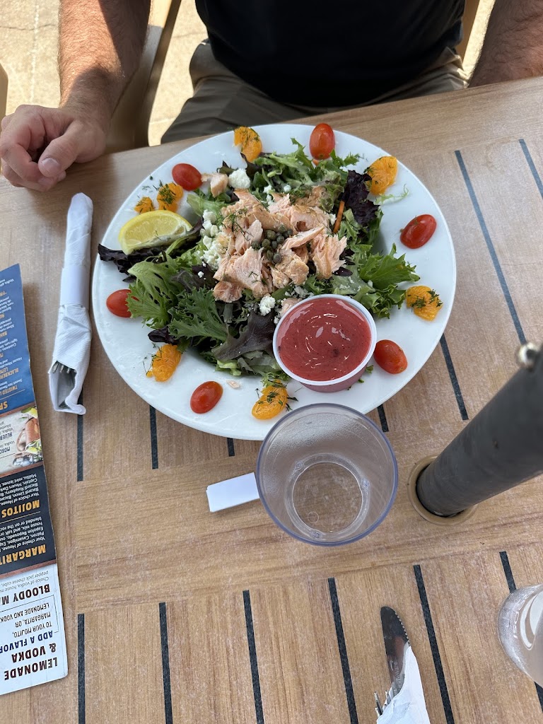 Food was okay, portions sizes were great! Maybe we were there on an off day? They seemed to be short staffed or training staff? We had to go find a server after sitting at our table for 15-20 minutes. 5 pm on a Saturday is when we were there. Place was maybe half full? It is at a marina though... Maybe they were filling orders for the boats? We did entertain ourselves by reading the names of all the yachts while we waited!