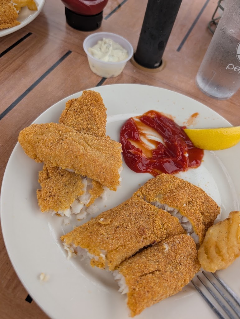 Great food and great service. Right on the water and the best fish (catfish and cod) I've had! Dog friendly and very accommodating.