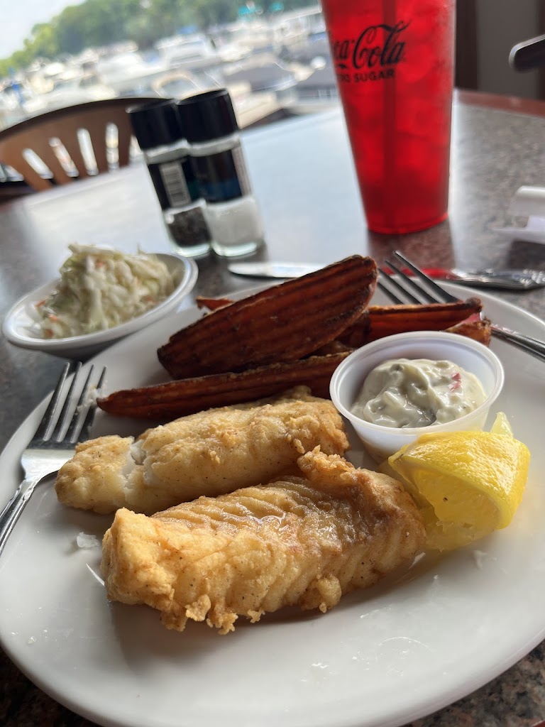 Walleye, Fries, Coleslaw and Shrimp are TOP Notch, sit outside on the water for a great atmosphere. If no breeze and you come later mosquitoes with eat you up. Great Food and Scenery. Highly recommend!!!