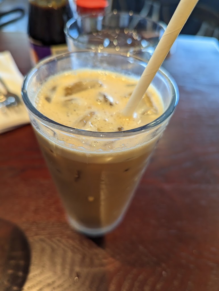 This was the Thai Iced Coffee and Beef Pho. The skirt steak was really tender and the iced coffee was delish. The only thing is, I wished they had more condiments on the table to add to the food. Also we went on a Sunday and there was only one waitress for the good amount of ppl there so maybe hire another person for that shift. The decorations/murals are also cool inside.