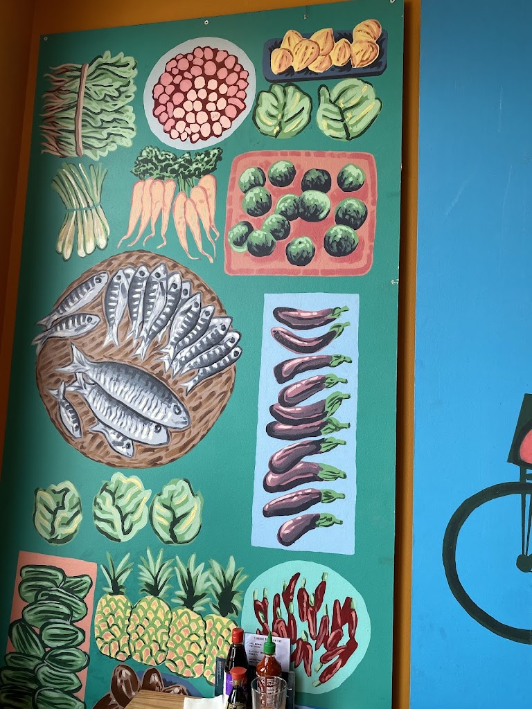A really nice lunch spot. There’s a kids menu, a bar, lots of seating in this sunny restaurant. The art on the walls (and ceiling) is awesome! Very clean bathroom, vegetarian options. We enjoyed our noodle bowls. Easy parking.