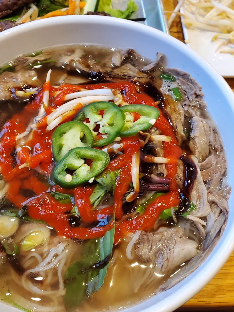 My friend had phō, he said it was mediocre, it looked bland. There was a nice plate of fresh bean sprouts, jalapeno slices, and cilantro.