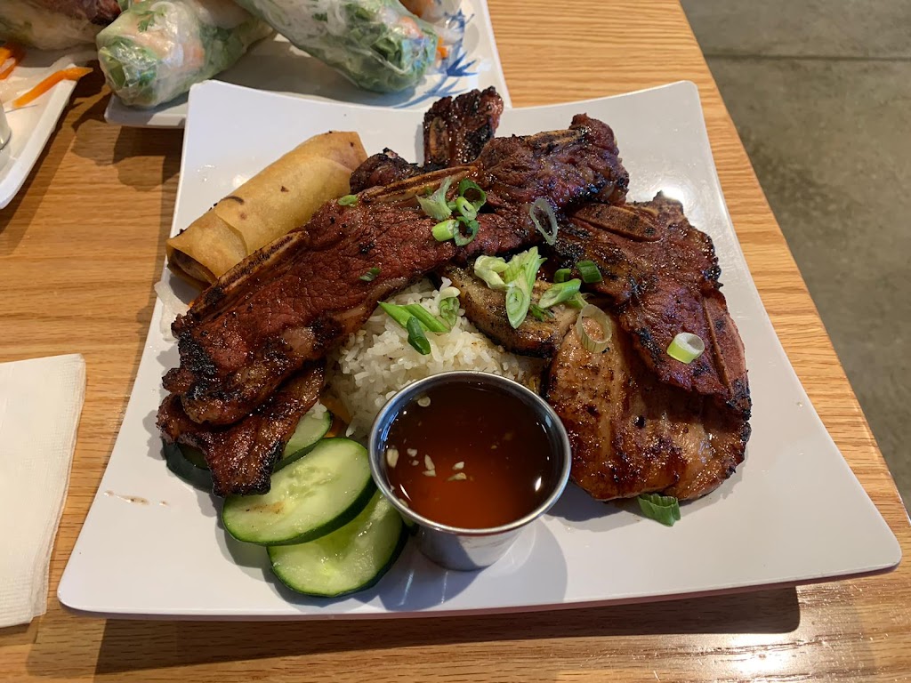 The food was mediocre the pho was okay the ribs was very good but a lot of fat. The waitress was very nice. The bathroom was clean