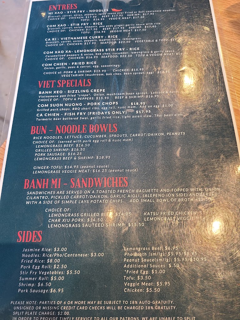 Food was just okay, it was lacking in flavor — very fresh though. My husband got pho and the broth was good and balanced, however the brisket seemed old and flavorless and the meatballs tasted like they had gone bad. Vibes were good but they only get you so far. They do have nightly specials which could be cool for the bay view locals. I like spending money on delicious food so I’ll continue driving down to Chicago for Vietnamese.