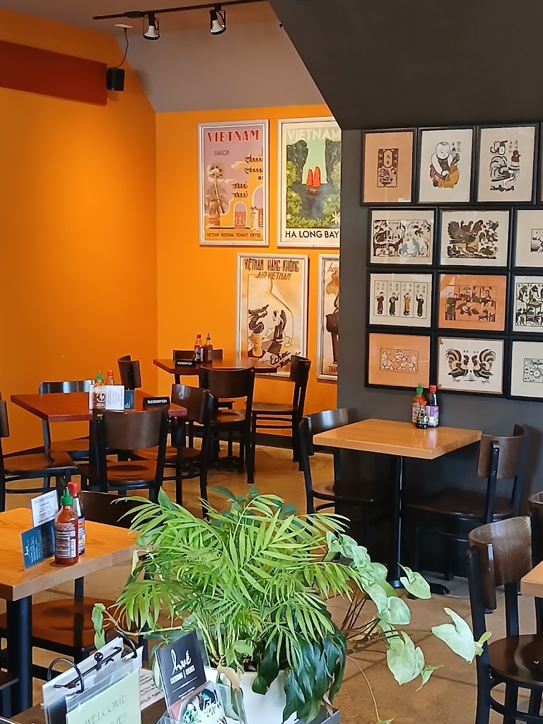 Poor service from the moment I walked in, lack of attention while I stood waiting to be seated. Too many tables close together, and also a bunch of empty space. It looks poorly planned and haphazard. Vietnamese coffee was very good, and the appetizer sampler was decent. Got a pork bahn mi, it was slathered in mayo, and I like mayo, this was way too much.