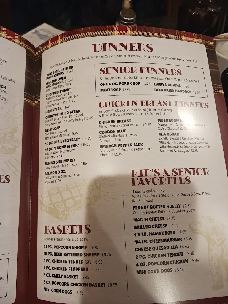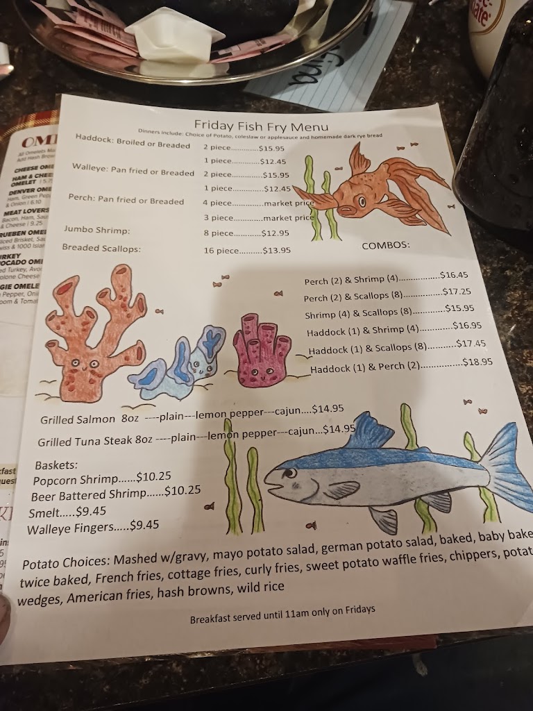 Great service and excellent food! Friday Night Fish Fry options are wonderful! It is such a good price and you get a bunch of food. I love that they give kids a chance to pick from a candy bin (good candies too!) When the meal is done. Love it!