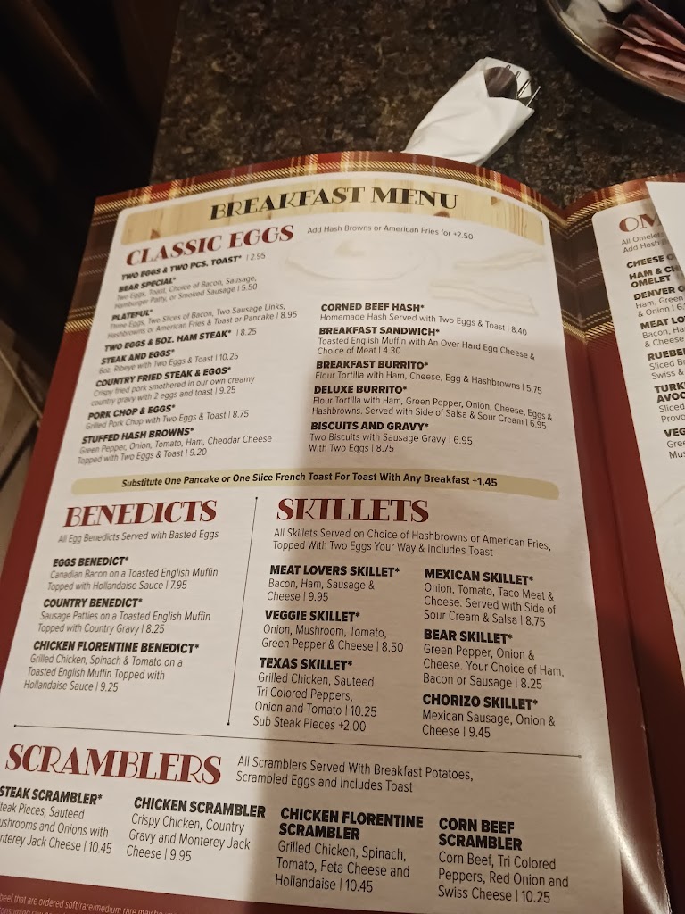 Great food that made my family very happy, with slightly slow service. I love the bear aesthetic and decor, big fan! I was saddened to see no sun bears, but understand why you'd go all in on the continental US bears.