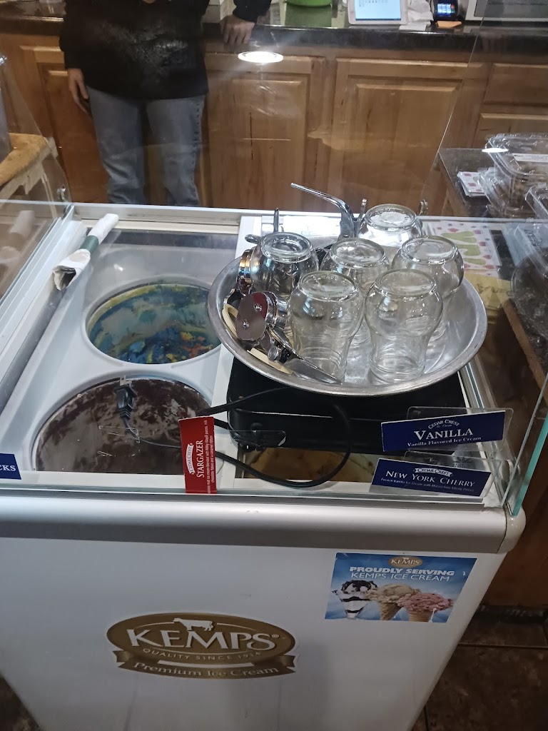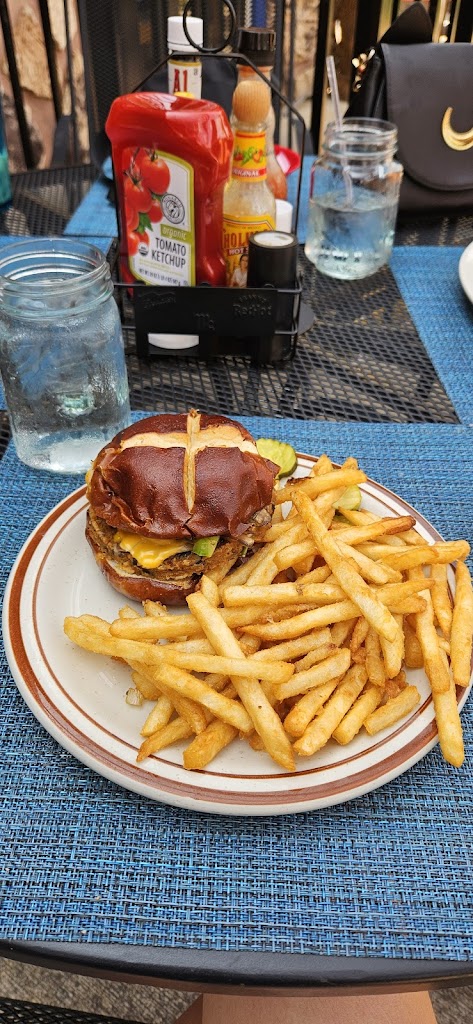 A cozy diner like restaurant with very tasty food and fast service. The garlic curds and deep fried pickles spears are delicious. All their burgers have an optional choice of a pretzel bun. Very reasonable prices. You can even get an ice cream cone, pie , or fried pie for desert.