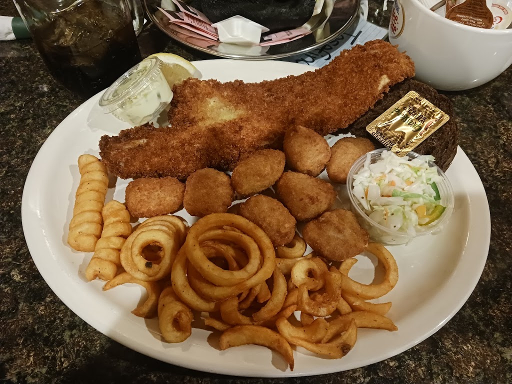The food - WOW. Stopped in on Friday so we had the fish menu. The Breaded Scallops were AMAZING. My mother got the shrimp, also amazing. The feel in the restaurant is awesome and the people were super nice.