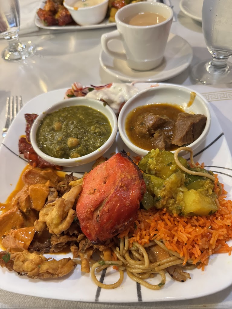 Brunch was amazing, and the buffet was so good, especially because my server, Reshma, was incredible. I finally had some yummy, authentic Indian food. I recommend it to everyone because the Indian food is usually spicy, but here it's mild, so everyone can enjoy it.