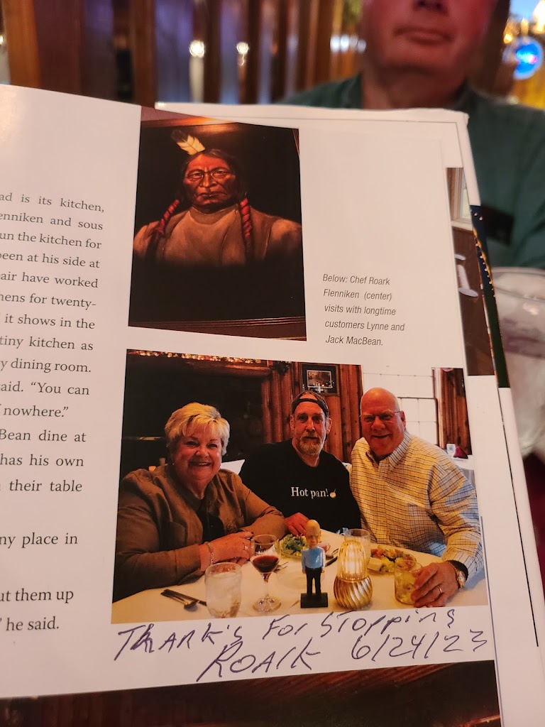 My wife and I ate here as part of a group. We'd never been here before. I am glad that they've kept the moderately politically incorrect name. The place is well-maintained with some interesting dated native American artwork. The food was quite good. I had the Seafood Jambalaya and my wife had the maple glazed walleye, and both were excellent. The service was pleasant and efficient, particularly being part of a group of 14. Ambience was casual but friendly. Prices are moderately high but not extravagant. We are likely to eat here again.