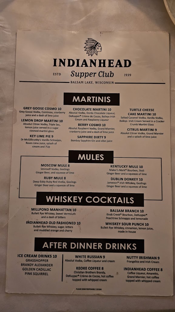 Indianhead Supper Club is a vintage Wisconsin Supper Club. Great Food, Drinks, and Fun!! Come visit!