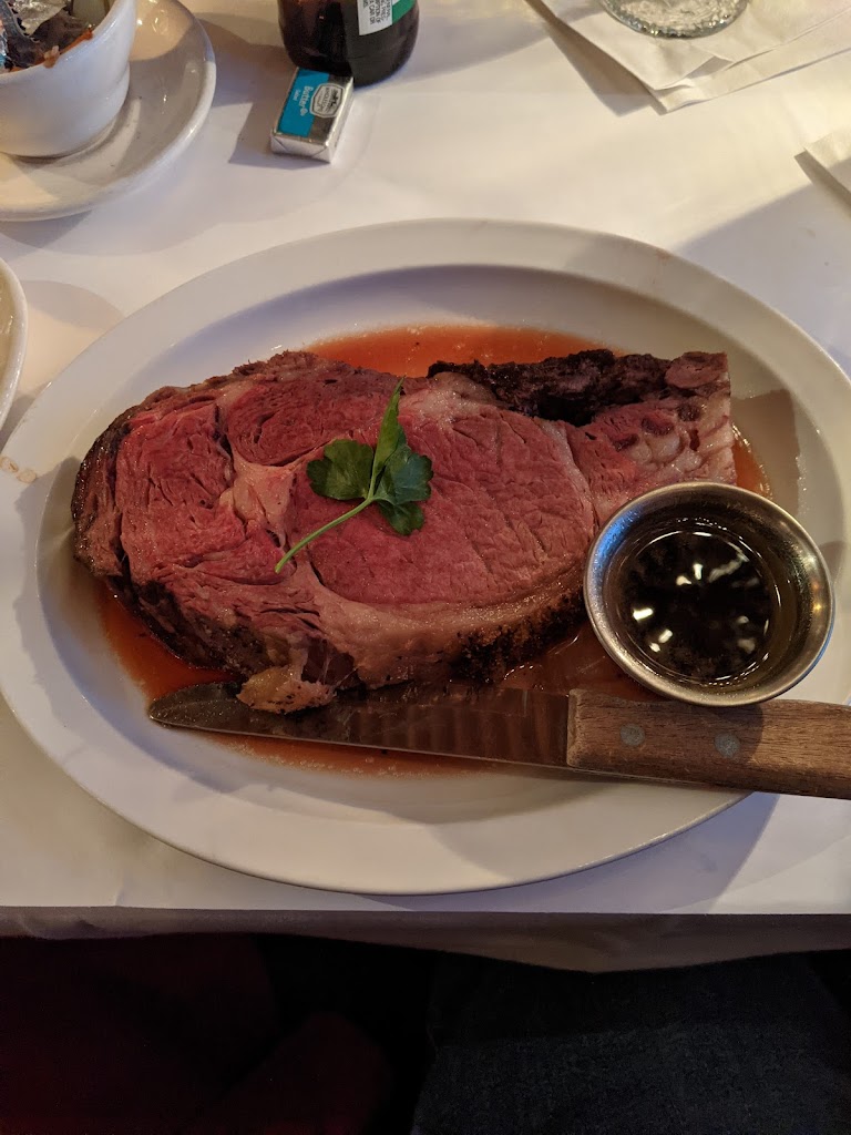 We had a dinner party of seven. Service was very good and prompt. I would suggest the restaurant add at least one or two vegetarian and vegan options. Not for me! Prime ribs was to live FOR! Not die for, that’s dumb.