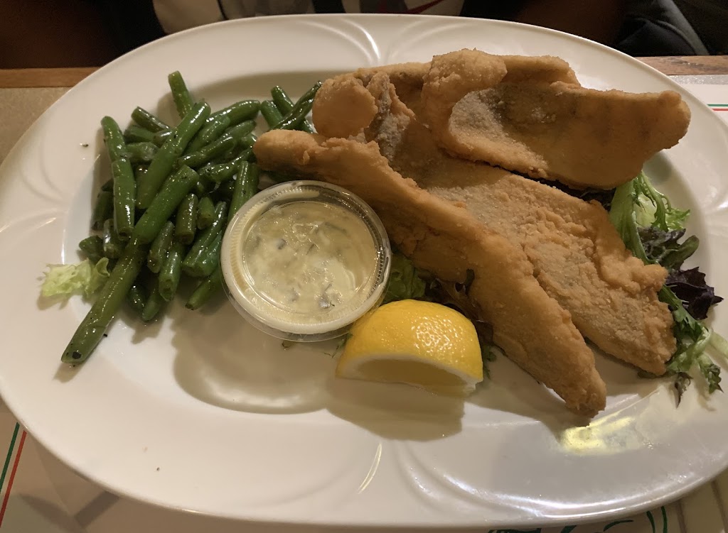 I ordered the fish fry which comes with a variety of different potatoes that you can pick, french fries, mashed potatoes, Italian potatoes, baked potato, or you can choose a pasta. I had the cod and mostaccioli and they give you a side salad. The side salad has nothing but very pale lettuce. The mostaccioli was good but I would have preferred more sauce because it ran out of sauce halfway through. I would suggest asking for extra sauce. The fish was good and tender. The tour of Italy plate is always good and their thin Italian pizzas are very good. They also give you two pieces of Italian bread with your meal. I wish the salad had some cucumbers or tomatoes or something in it besides just lettuce.