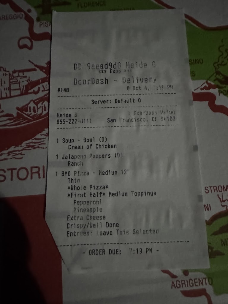 I'm a truck driver i Ordered pizza, soup, poppers, and a shake first time ever ordering here not disappointed at all. I will order again in the future I DoorDash it and had it sent to the truckstop and it's fabulous.