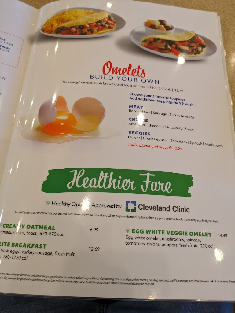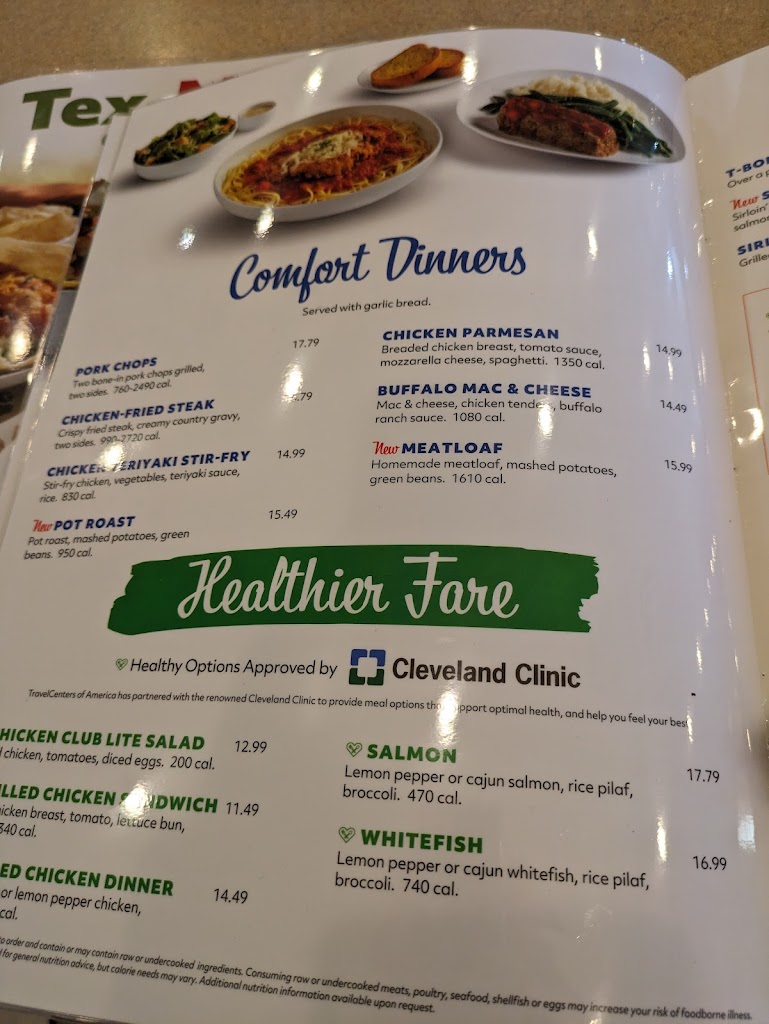 Food was one of the best truck stop food places we ever been. Past our expectations of eating out of the truck.