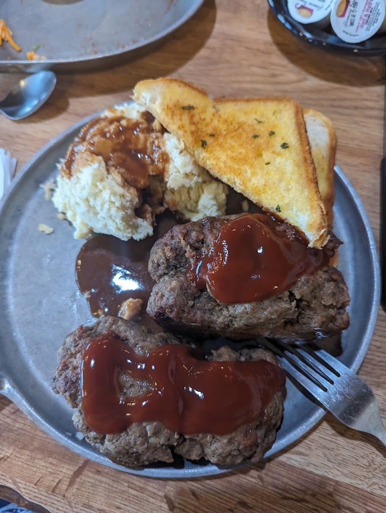 Iron Skillet has been serving home-cooked meals to highway travelers for more than 50 years! With fresh food served by friendly folks, we’re committed to providing a high-quality dining experience. Stop in to enjoy a hearty steer burger breakfast with eggs, hash browns and toast. Or if you’re craving a burger, enjoy our southern BBQ smash burger. It’s loaded with American cheese, bacon, zesty slaw, fried crispy onions and BBQ sauce. Iron Skillet also has a variety of homestyle comfort meals like meatloaf and pot roast along with steaks and fish. Visit us for breakfast, lunch or dinner. Hope to see you soon at the Iron Skillet for your next meal!