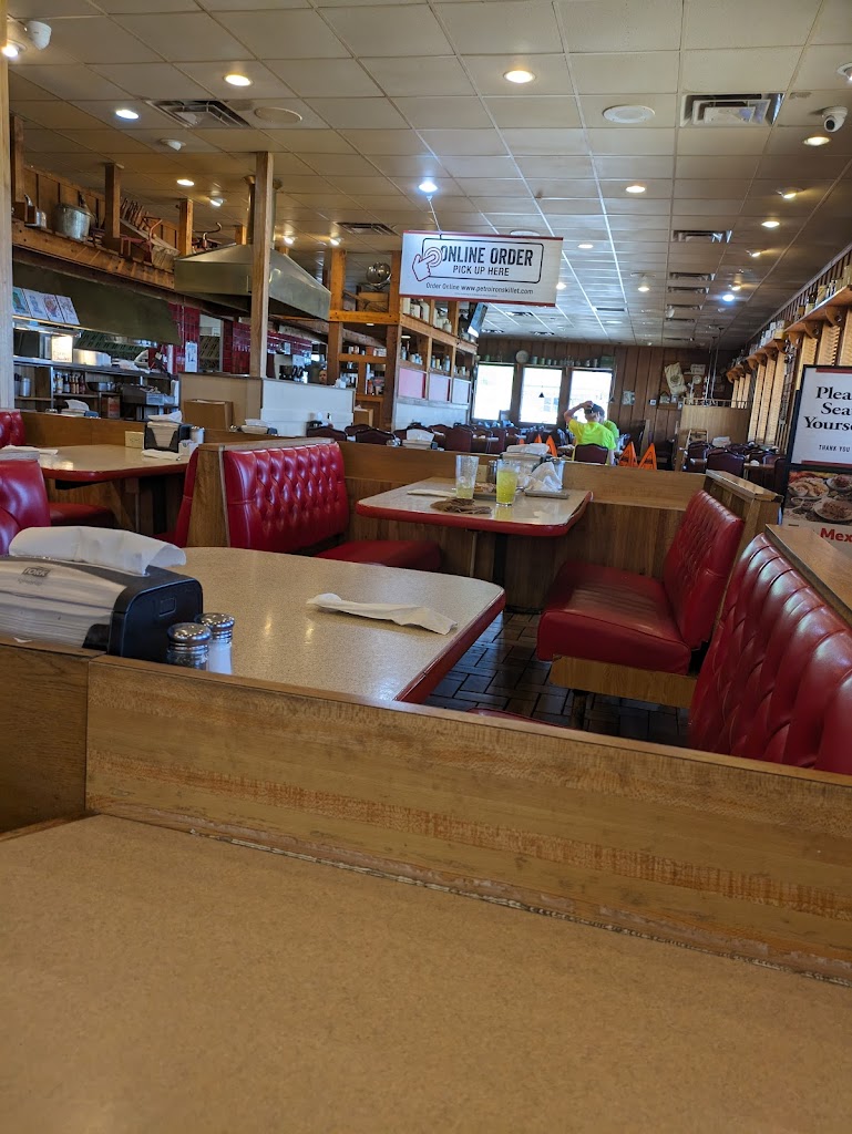 Rude waitress stood up for over 5 minutes, when I finally got her attention, she made it clear that if I want to dine in I have to SIT in the truckers bar only. And that She had too many tables to take care of. All that with bad attitude and without even looking at me. never had this kind of treatment from any other iron skillet before.