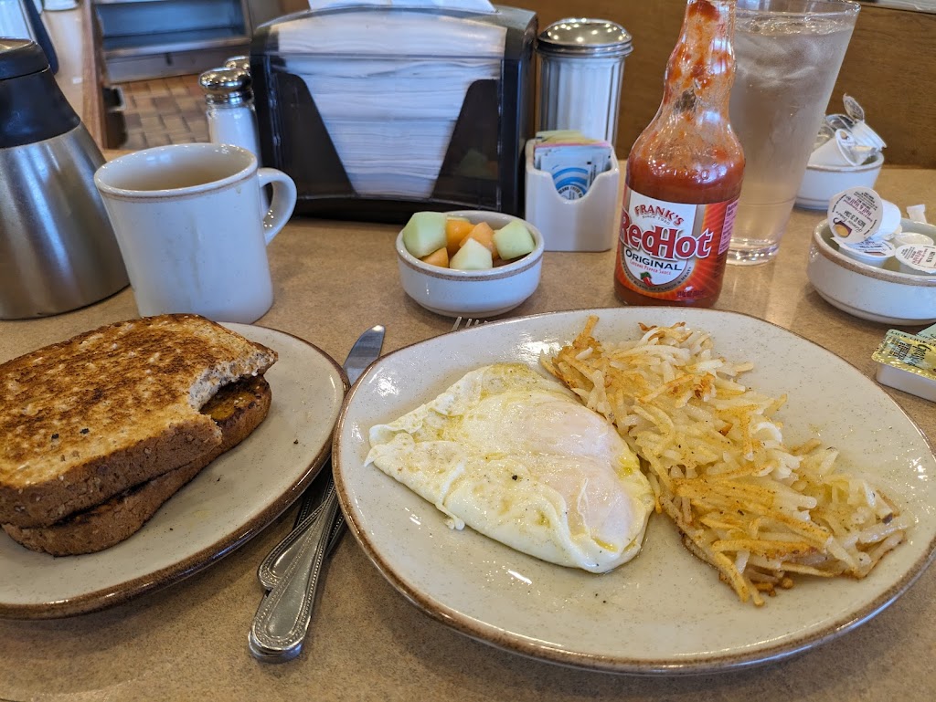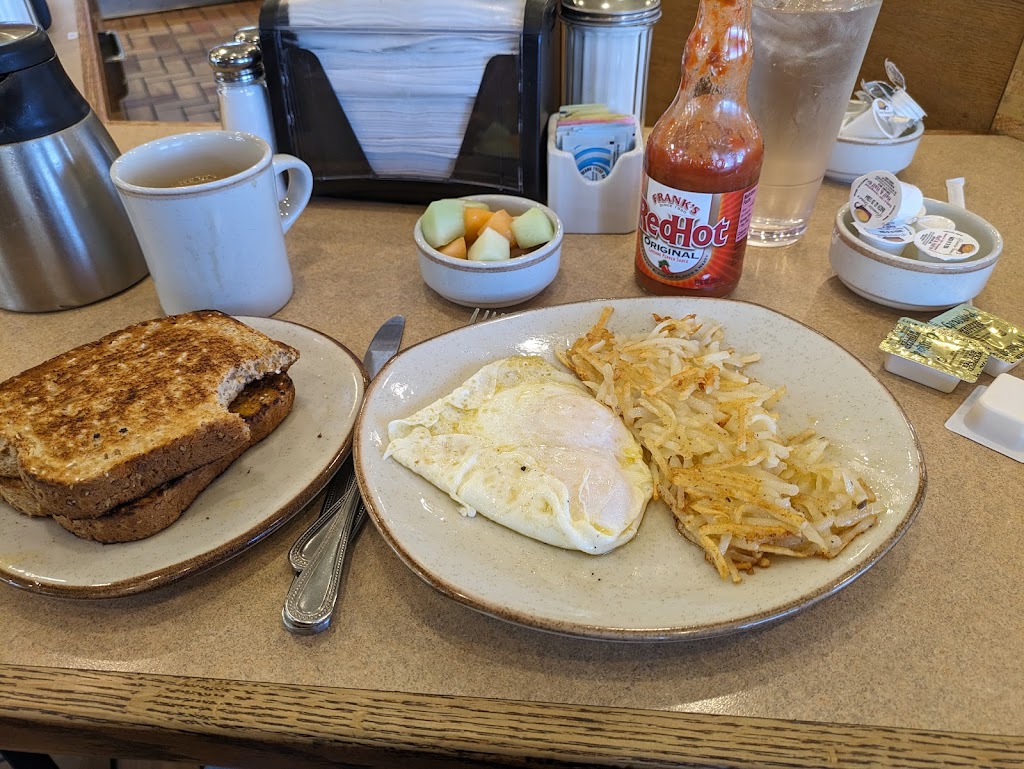 Don't order eggs "sunny side up." They are cooked on bottom and completely raw on top, as in, totally clear. Waitresses will tell you "that's how they come." Cook needs additional training.