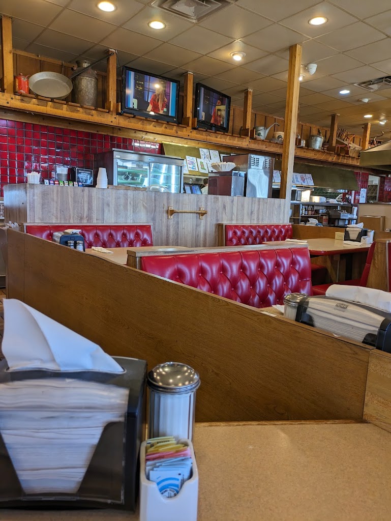 Waitresses are overextended. They have to seat customers, serve food, take money, clean tables, which causes longer wait times and long backup lines. Food is not as good as it used to be when it was a franchise. Update: Women's bathroom wasn't clean. 12/27/20. Service is getting worse especially at night.