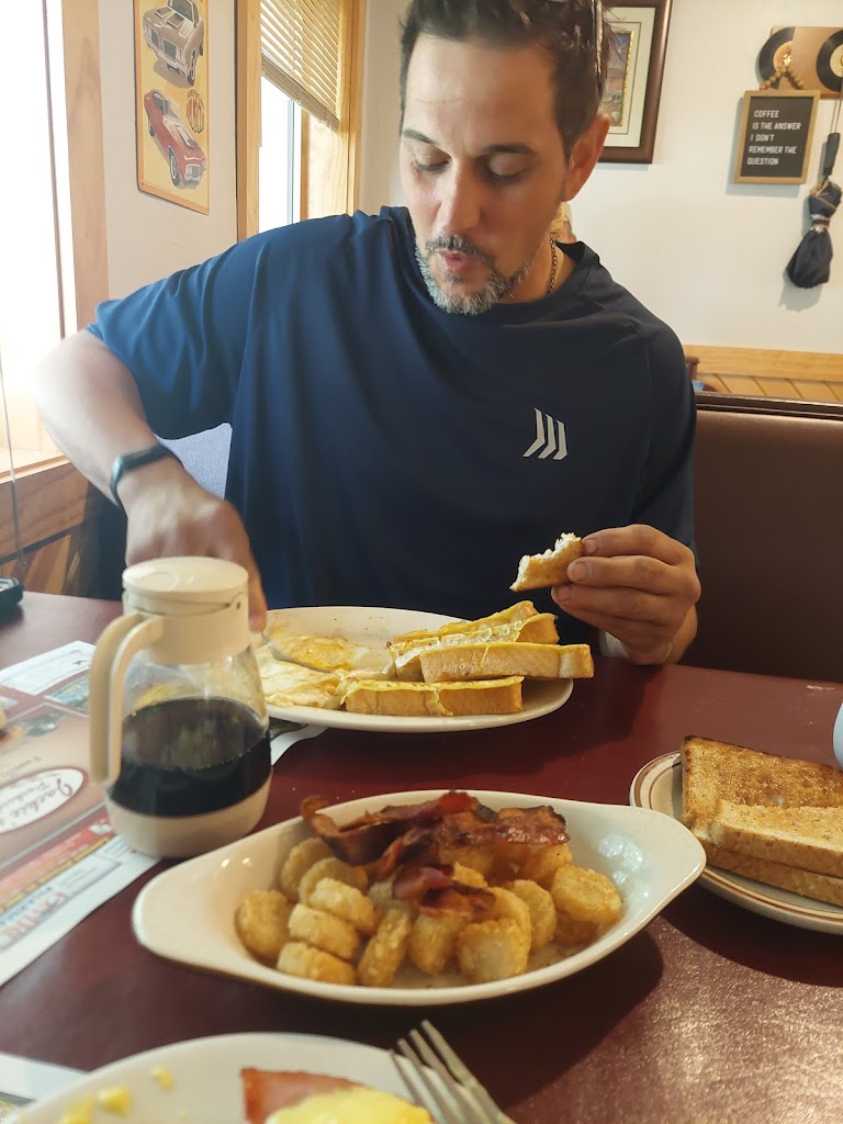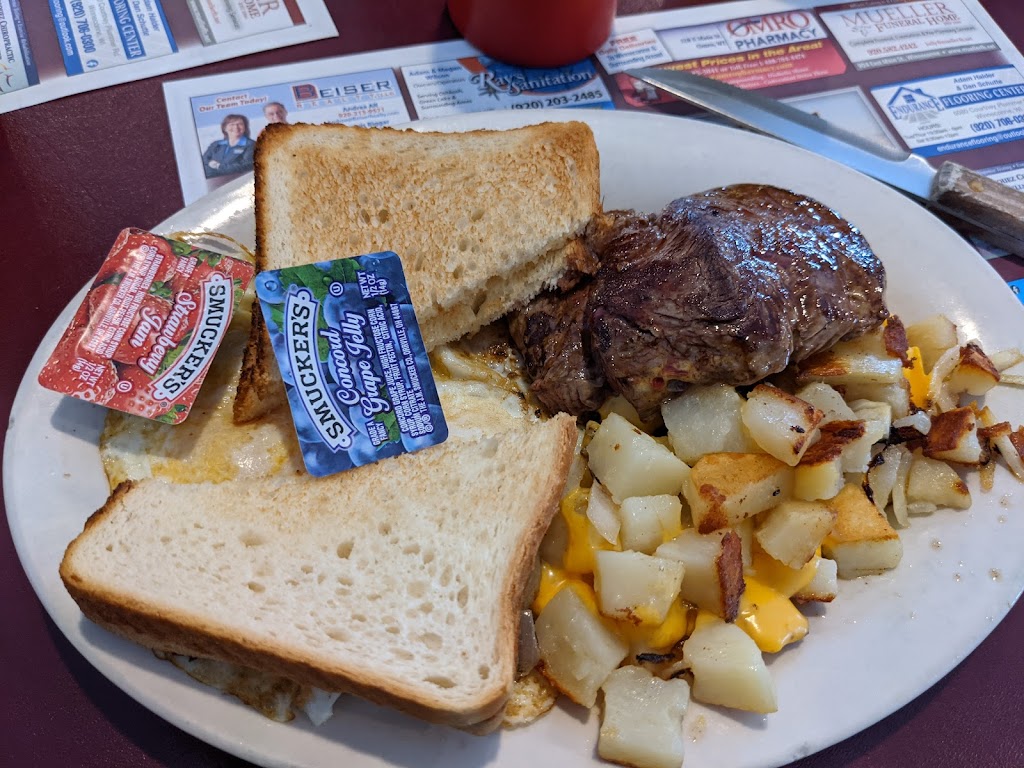 Stopped in before a track meet. Can't wait to come back next time through Winnecone. Great service, crazy low prices and food was quite good. Had breakfast ("garbage skillet" and potato pancakes). We recommend.