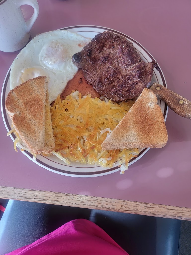 Service was fast and friendly. Great prices and portions. We had the country fried steak and the steak skillet