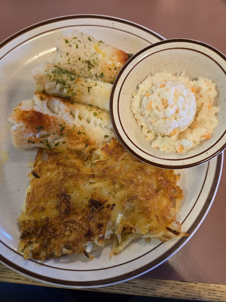 This was our first visit, a Friday. Our wait person was friendly and efficient. We had the fish which was tasty. An even better review might be warranted but we'll wait until our next visit when we try their breakfast items and maybe a sandwich.