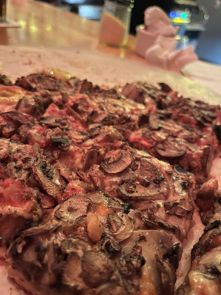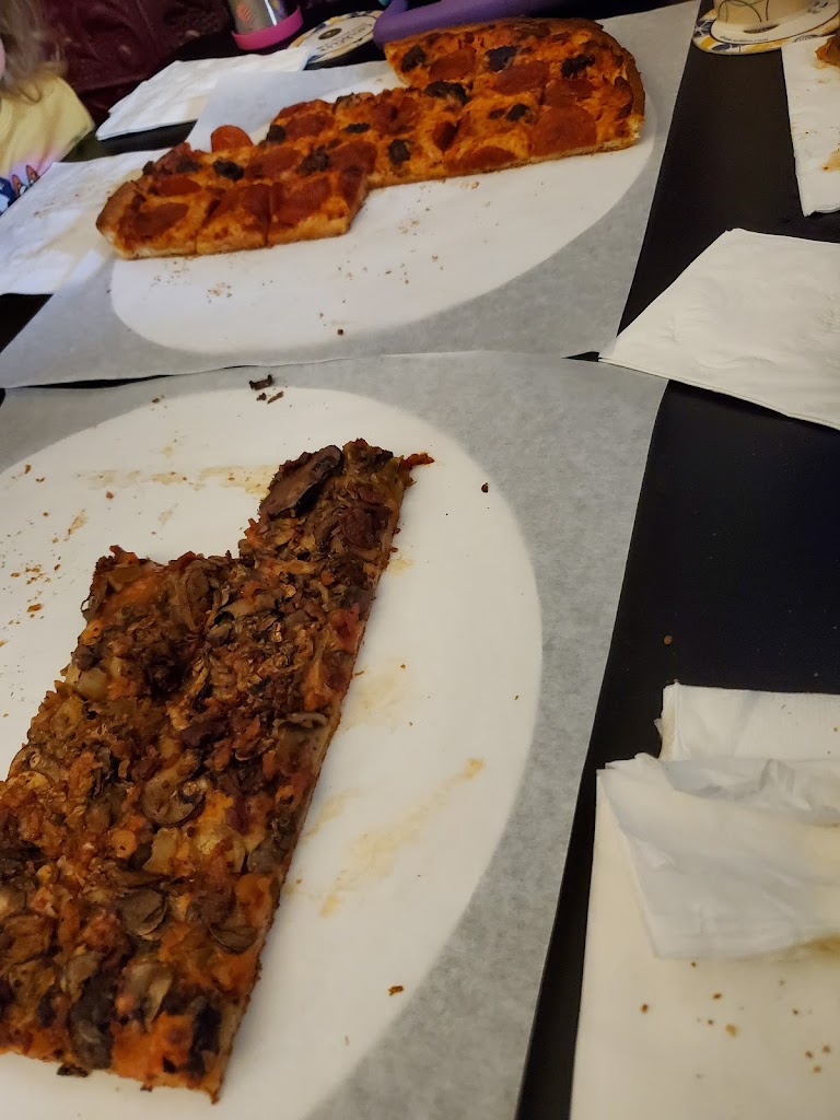 Great pizza!! They cut it in small squares, I'd prefer triangles.