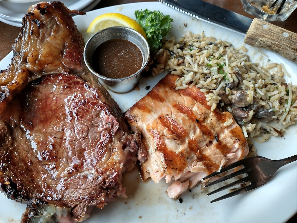 Lakeside, wood-paneled steakhouse with local craft beer & happy hour, plus a patio.