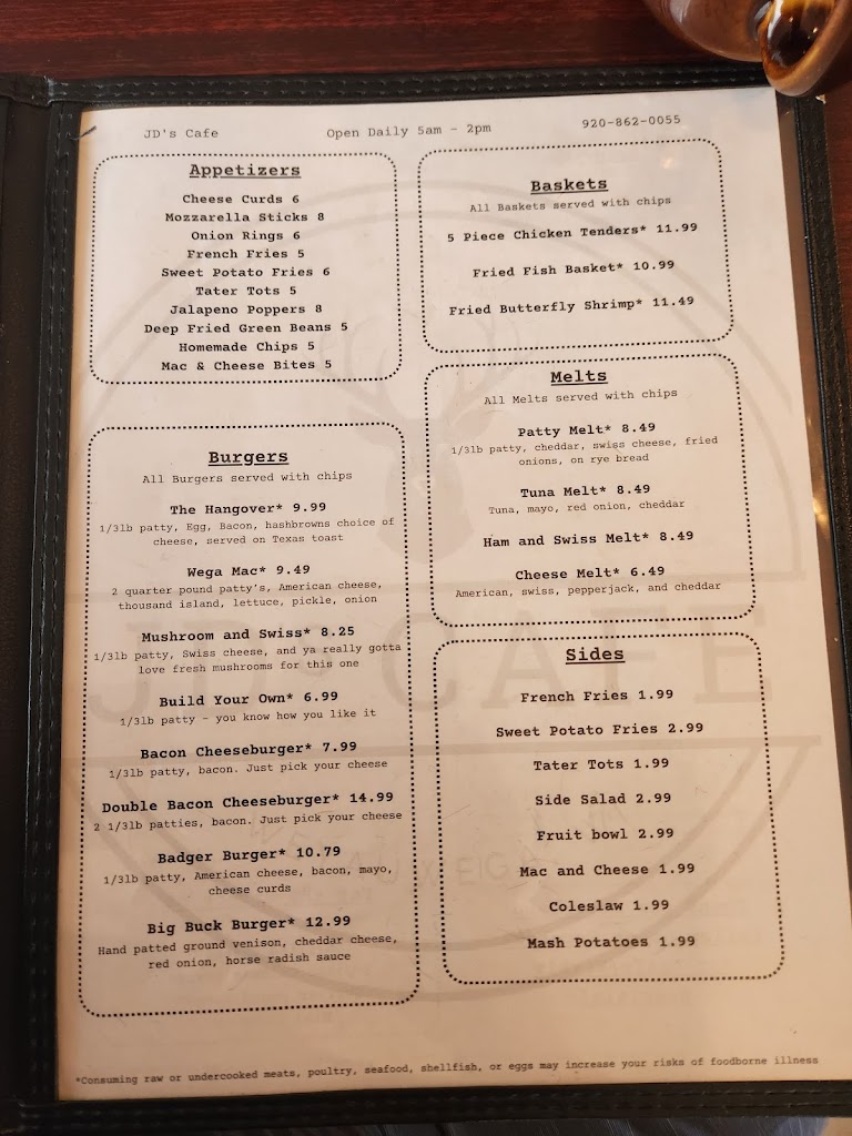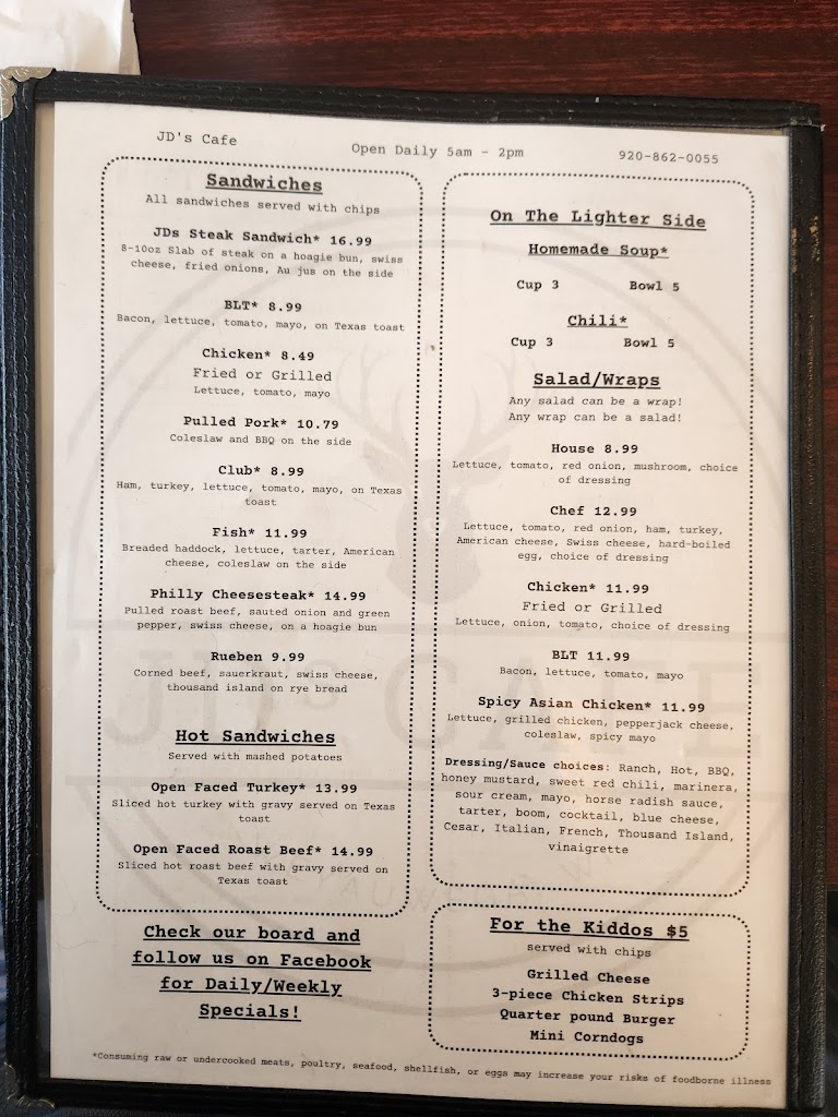 When you visit Wisconsin, it’s all about the sausage. JD’s delivers an excellent breakfast at a reasonable price. The menu has both small and larger portions to fit any appetite. The staff is friendly and attentive. There is plenty of parking, but be forewarned that this has become a very popular place and there may be a short wait. Monthly specials accent the farm-fresh menu. Enjoy a latte, cappuccino, mocha, americano, red eye or frappe style coffee with your breakfast. Catch up on the local news while seated at the counter. For afternoon, try some ice cream or a root beer float. Arguably, there is not a better cafe in Wisconsin