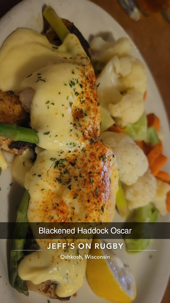 Jeff's On Rugby, in Oshkosh, WI, is the area's leading restaurant serving Appleton, Green Bay, Fond du Lac, Oshkosh and surrounding areas. We offer family dinners, steak and seafood, happy hour, Friday fish fry, prime rib, food specials every Tuesday through Sunday and more. To satisfy your next craving, stop by Jeff's On Rugby in Oshkosh today!