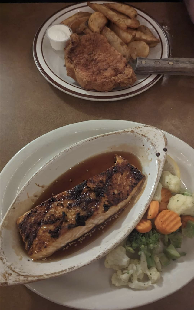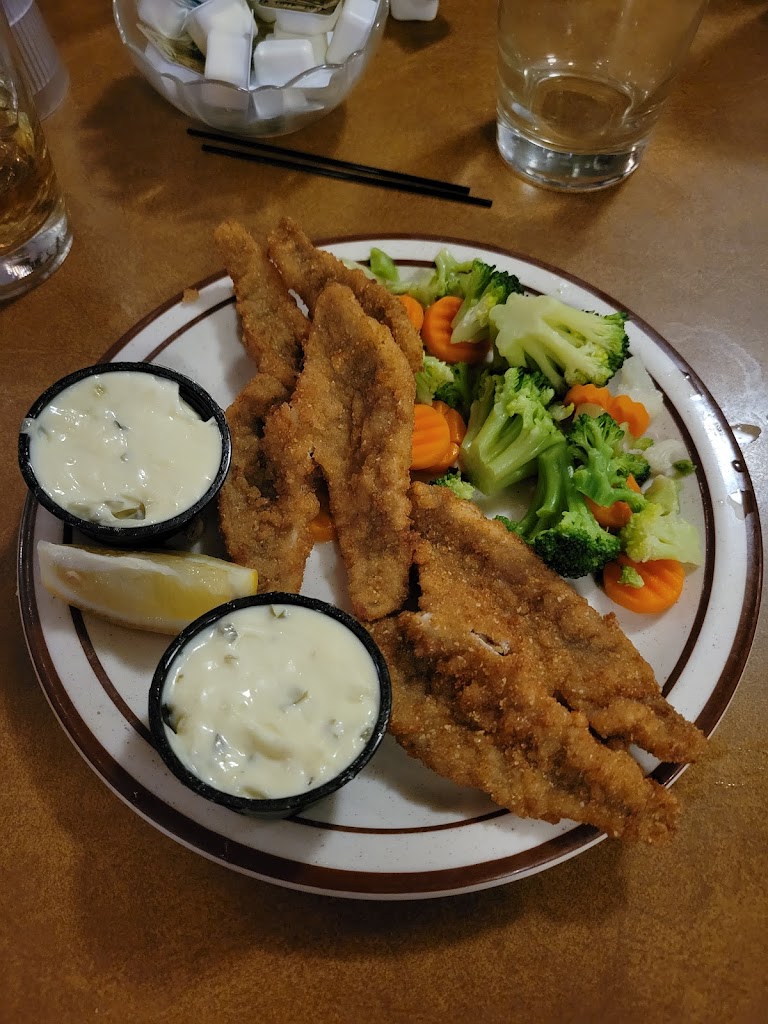 Fish was soggy portions smaller. This used to be our go to place fir fish fry but last time we didn't get our sides. This time fish breading was soggy, perch tasted very, very fishy(not like fresh caught). Chowder was just a thick sauce with not much else. For 50 bucks not counting tip there are much better options.